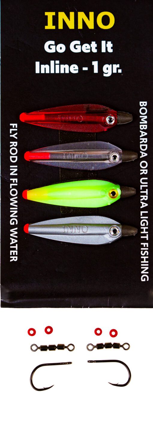 INNO GO GET IT ist Ihre neue Ein-Gramm-Waffe an der Küste oder in Ihrem Put & Take-Gewässer nach Bombarda oder direkt an Ihrer ultraleichten Spinnausrüstung. Sowie im fließenden Wasser an der Fliegenrute.